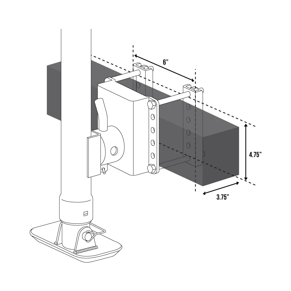 - Pipe mount bracket system with stow pin for easy stow and removal – installation requires 8 inches of clearance