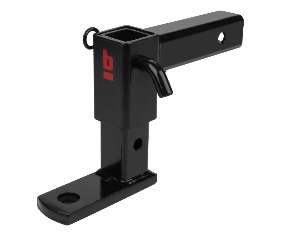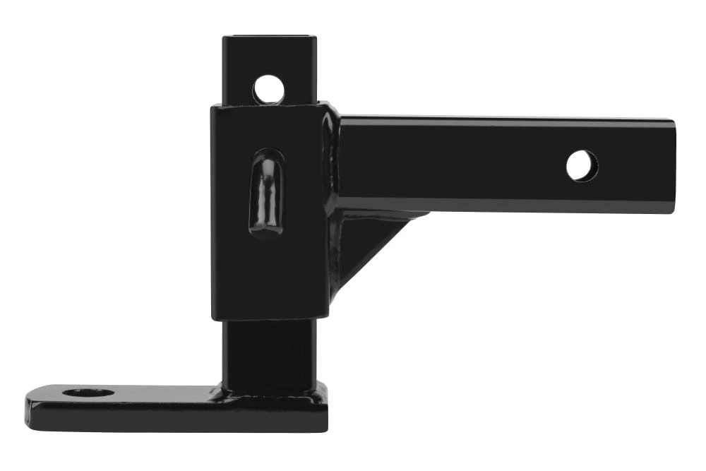 The bROK adjustable ball mount provides multiple drop and rise positions to accommodate a variety of trailer heights. Convenient pin and clip operation allows for easy adjust ability and security of operation. Made of welded steel with black powder coat finish for years of reliable operation.