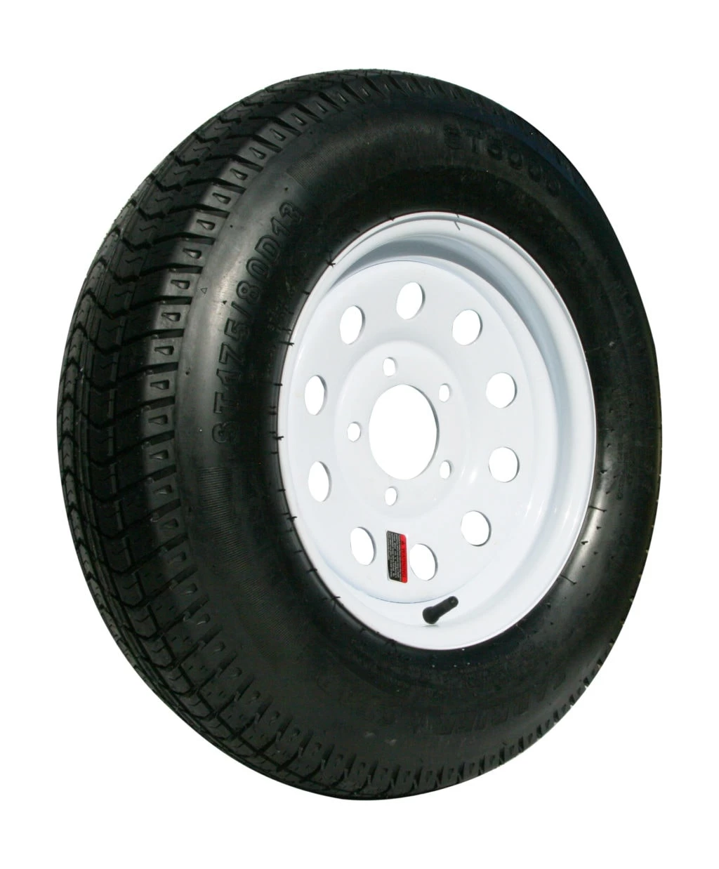 13-in tire with white mod wheel.