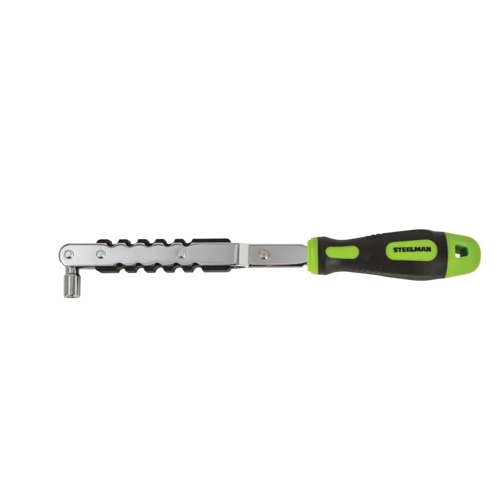 The STEELMAN 79435 Heavy-Duty Tire Valve Stem Puller and Installer provides a quick and easy way to install and remove valve stems. It features a durable steel body that frames a polyvinyl spacer that has 10 total notches (5 on each side) to help provide a secure anchor point on rims during installation and removal of valve stems. The tool’s head pivots a full 180-degrees to provide leverage at any angle against wheels and can be straightened for easy rotation when attaching to or removing from a valve stem and with this tool there is no need to first remove the valve core. The dual durometer handle is ergonomically designed and allows for a secure, comfortable grip. Works on all tubeless style tires, from cars and trucks, to motorcycles and ATVs, as well as heavy-duty trucks and trailers. Whether you’re a professional or home tire changer, you’ll come to rely on this time saving tool!